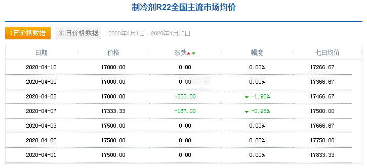 R22市價(jià)回落【華天】調(diào)價(jià)通知