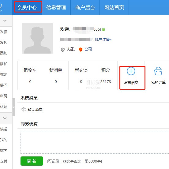 第三步:點擊“會員中心”中的“發布信息