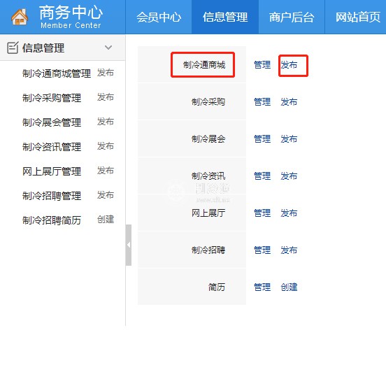 第四步:點擊“制冷通商城”的“發布