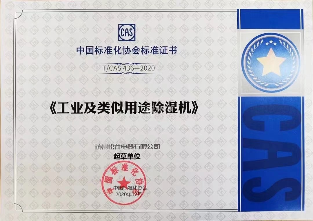 證書(shū)介紹 《 工業(yè)及類(lèi)似用途除濕機(jī)》標(biāo)準(zhǔn)起草單位