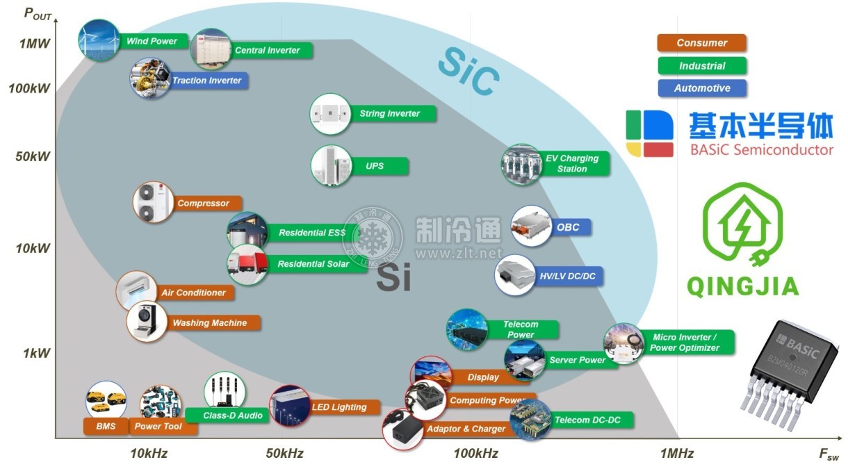 近年來,傾佳電子-著力推廣國產碳化硅SiC功率器件,國產SiC-MOSFET,國產SiC-MOSFET功率模塊,國產氮化鎵GaN HEMT以及配套的隔離驅動IC,自舉驅動IC,不斷在高壓汽車電驅系統、高壓快充樁、消費電子適配器,數據中心、通訊基站電源、新型電力系統等領域拓展市場。除了車載應用,SiC碳化硅的替代IGBT方案開始在工業的UPS系統(不間斷電源)、軌道交通等領域推出。傾佳電子-專業功率半導體(IGBT單管,IGBT模塊,碳化硅SiC-MOSFET,氮化鎵GaN)以及新能源汽車連接器分銷的元器件在電力電子領域,在功率器件方面發揮重要作用。更小的元胞尺寸、更低的比導通阻、更低的開關損耗、更好的柵氧保護是碳化硅MOSFET技術的主要發展趨勢,體現在應用端上則是更好的性能和更高的可靠性。加之碳化硅器件的高功率密度、高結溫特性、高頻特性要求,也對現有封裝技術提出更高的要求。由于碳化硅SiC-MOSFET,氮化鎵GaN在導通損耗和開關損耗方面的出色性能,可以大大降低電力電子方面應用的能耗。