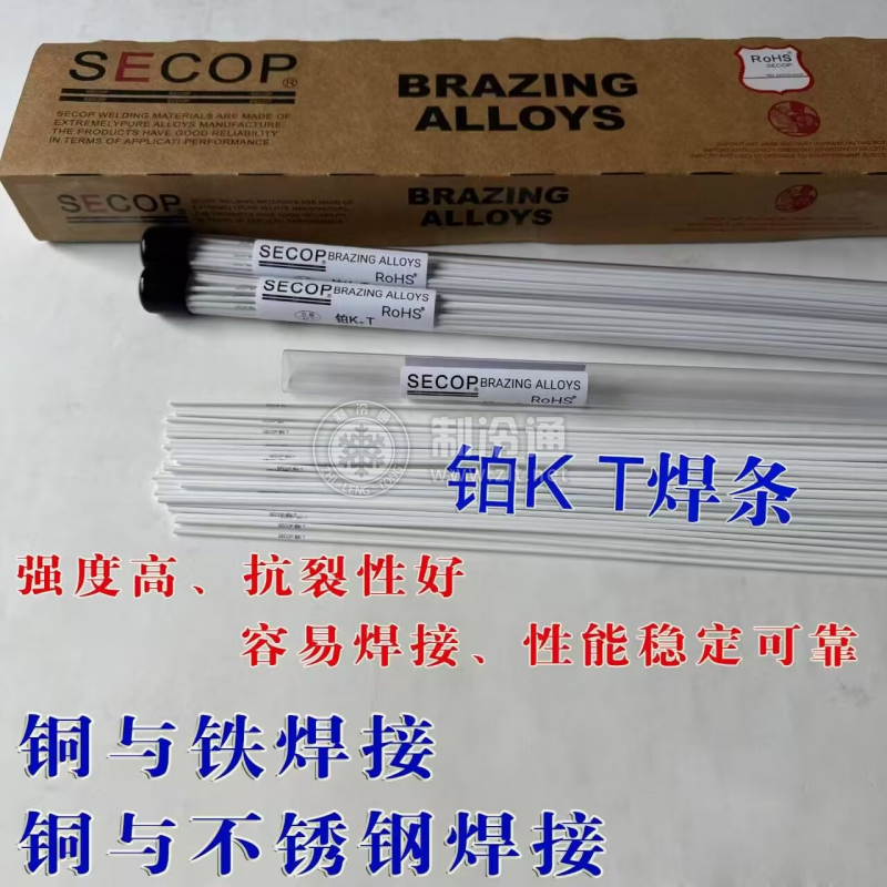 SECOP鉑K-T焊條自釬材料適用于焊接銅和鐵合金;銅和不銹鋼焊接。
