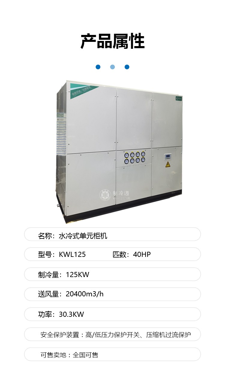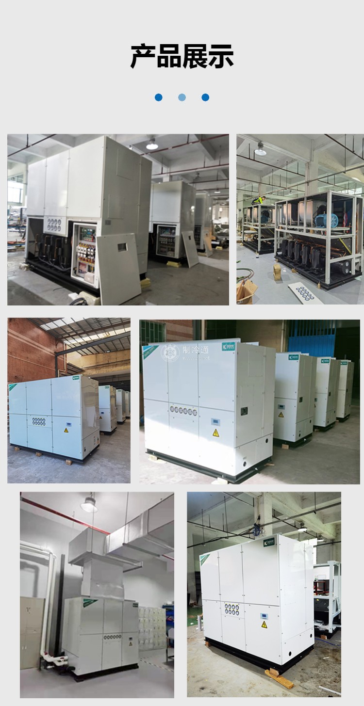 水冷柜機是以冷卻水為冷源,以冷媒制取冷量的空調機組,在結構上將壓縮機、蒸發器、冷凝器、節流部件等集中為一體對外直接輸出冷氣。一般有頂送風型,即采用風口管道輸送式送風,根據空間條件選擇出風口個數和安裝位置,滿足大空間場所集中管理、均衡控溫的需要;回風方式又分前回風型,適用于獨立大空間直接回風,免除回風管道和機房的設置;后回風型適用于多個獨立空間的集中送、回風空氣調節,需要設置各空間的回風管道和機組機房。