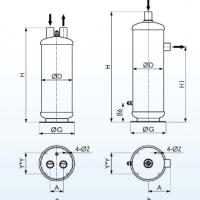F-56系列儲油式油分離器以其離心式分離的特點,可在引起最小壓降的情形下達到非常好的分油效果。從壓縮機輸出的帶有懸浮油顆粒的氣態制冷劑進入到油分離器中。氣態制冷劑攜帶的油經過進口金屬絲網和帶有隔板的出口金屬絲網的攔截,油顆粒之間相互撞擊并形成較重的油顆粒,這些較重的油顆粒最終撞擊在油分離器的內壁上,此處具有最終分離作用。被分離出來的油滴落到油分離器的底部,并通過此處安裝的浮球式針閥將油返回到曲軸箱或儲油器中。