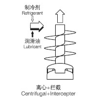 從壓縮機輸出的帶有縣浮油顆粒的氣態制冷劑進入到油分離器中,帶有縣浮油顆粒的氣態制冷劑與螺旋式導流板相接觸,并且沿導流板旋轉流動。油顆粒在離心力的作用下,被分離到螺旋式導流板的邊緣處和油分離器的桶壁上,存這里被分離出來的油顆粒聚集成較大的油滴流入油分離器底部的油收集區。我們在螺旋式導流板的下部設計了一個碳狀導流置,它可有效的防止被分離出來的油滴再次飛散。導流置下面又設計了一個碟狀反射屏,反射屏的獨持設計使得油收集區域被獨布分隔出來,它可以防止油分離器內流速過高時油收集區域內的油被帶走。