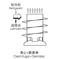 油分離器內部安裝了一個用不銹鋼絲編織成的除霧器。從而形成了一道捕獲霧狀油的屏障。這道屏障使霧狀油變得紊亂,從而使得它們彼此相互碰撞、聚集,并且吸附在除霧器上變成油滴,最后靠重力作用到達油分離器底部的油收集區。油分離器底部有一個法蘭,可以非常方便的清洗進入油分離器的臟物。法蘭上裝有一塊永磁鐵,它可以吸附進入油分離器中的鐵屑。