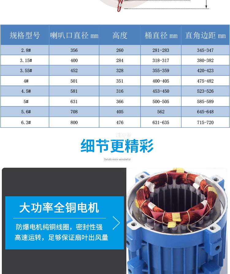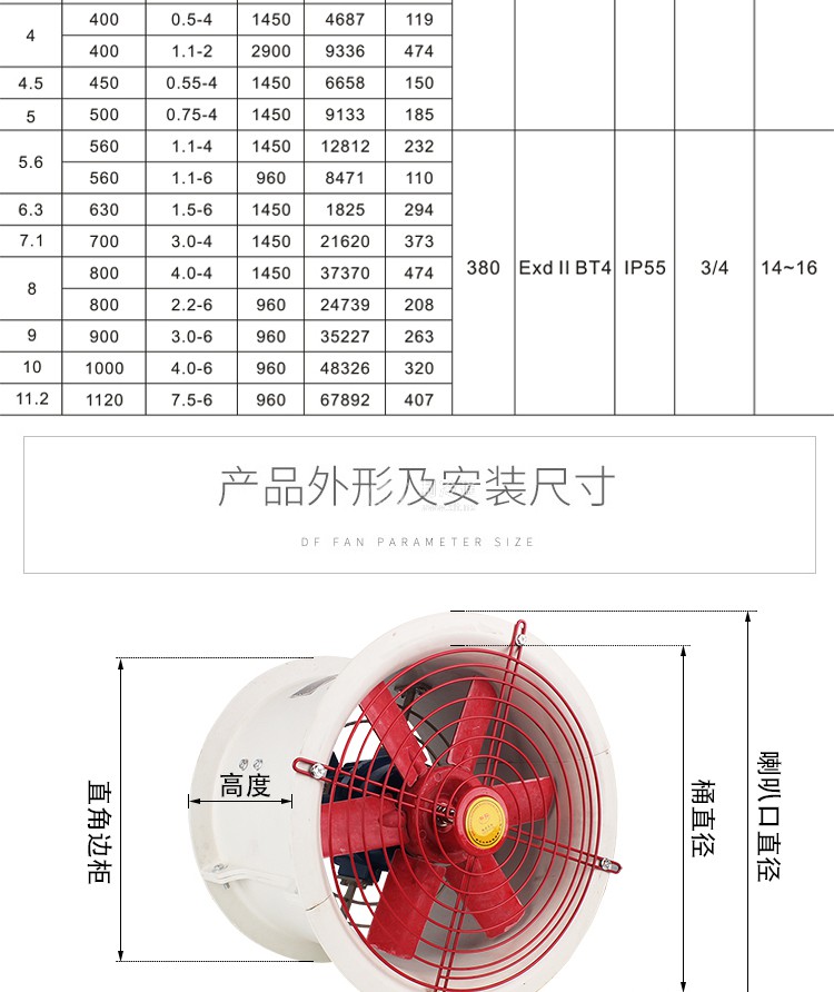 防腐防爆軸流風(fēng)機(jī) FBT35-11-3.15# 功率:0.25kw 風(fēng)量:2273m3/h 轉(zhuǎn)速:1450r/min 全壓:74pa