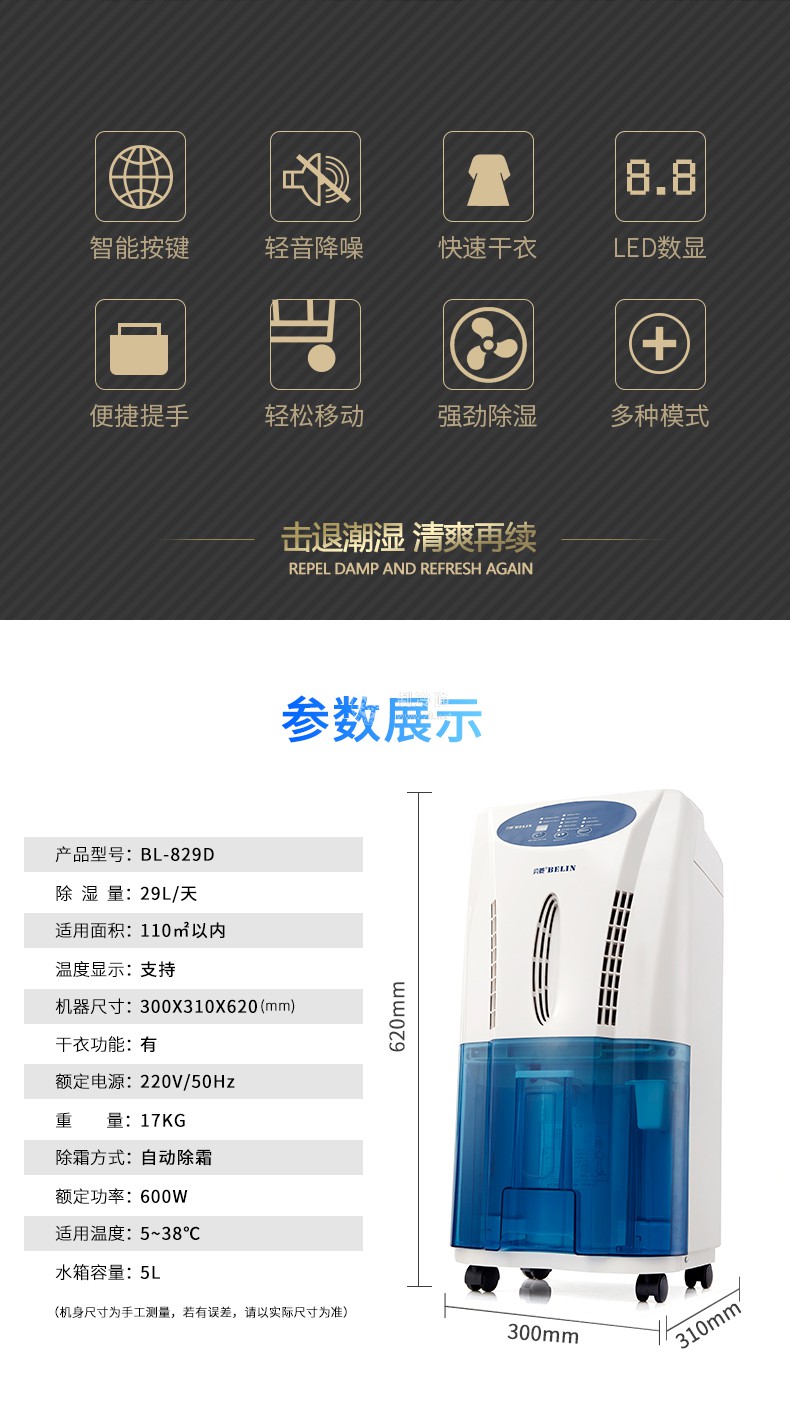 貝菱除濕機BL-829D干衣凈化靜音抽濕器去濕機
