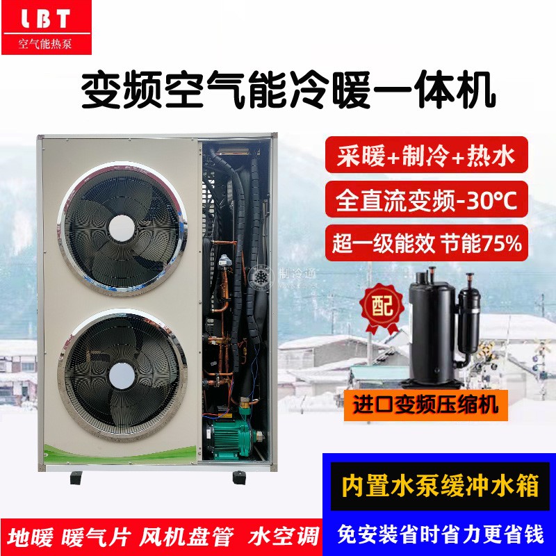 山東隆百特空氣能熱泵空氣源熱水系統一體機采用集成套裝,采用變頻超低溫直流直熱式壓縮機,-30度自動化霜自動防凍,采暖制冷熱水烘干一機多功能,是家用熱泵商用熱泵,溫室大棚泳池熱水機組。