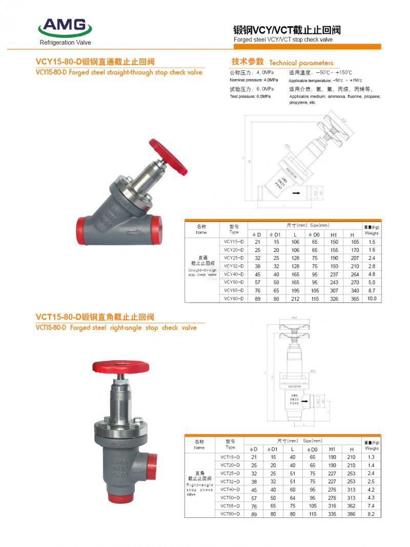 AMG DN50直通截止止回閥VCY和直角截止止回閥VCT系列