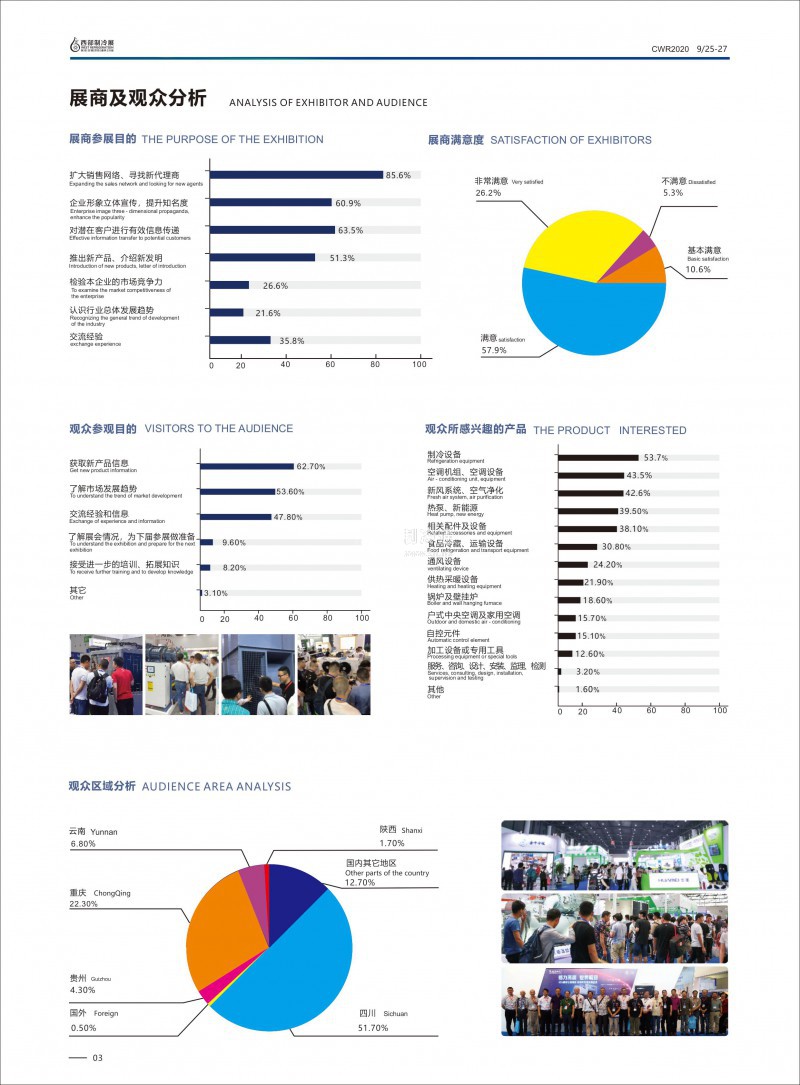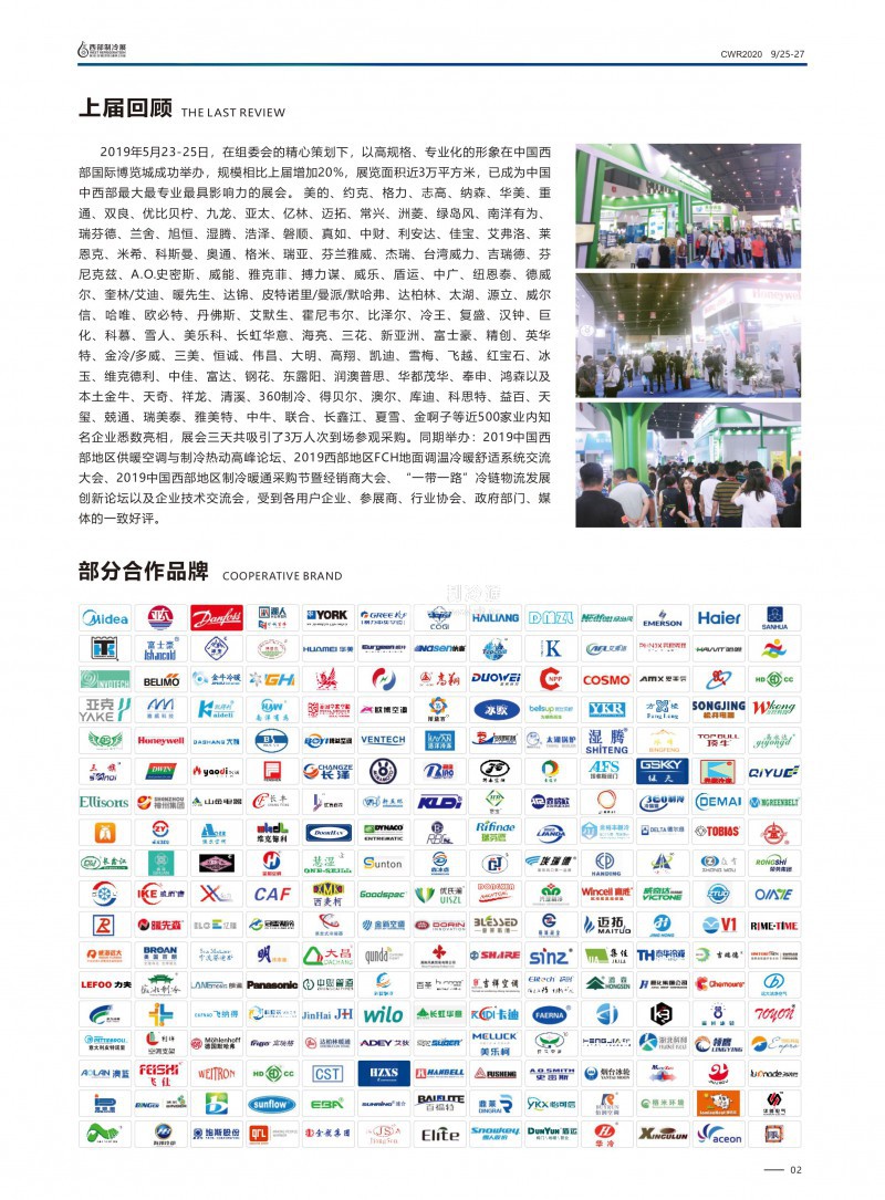 上屆回顧:2019 年 5 月 23-25 日,在組委會的精心策劃下,以高規格、專業化的形象在西部國際博覽城成功舉辦,規模相比上屆增加20%,展覽面積近 3 萬平方米,近 500 家參展商,3 萬人次到場參觀采購,已成為中國中西部最大最專業最具影響力的展會。約克、美的、格力、海爾、志高、長虹、納森、華美、重通、雙良、優比貝檸、九龍、亞太、億林、邁拓、常興、佳寶、九洲、綠島風、南洋有為、瑞芬德、蘭舍、旭恒、濕騰、浩澤、磐順、真如、眾有、羅特、艾弗洛、 萊恩克、科斯曼、奧通、格米、瑞亞、風口之家、杰瑞、吉瑞德、芬尼克茲、A.O.史密斯、博世、威能、雅克菲、搏力謀、威樂、盾運、中廣、紐恩泰、奎林/艾迪、暖先生、達錦、皮特諾里/曼派/默哈弗、達柏林、太湖、綠天、源立、FCH、暖貝爾、威爾信、哈唯、歐必特、 丹佛斯、艾默生、霍尼韋爾、比澤爾、冷王、復盛、漢鐘、巨化、科慕、冰輪、雪人、美樂科、西克、長虹華意、海亮、三花、富士豪、 精創、英華特、三美、巍華、恒誠、偉昌、大明、高翔、凱迪、雪梅、 飛越、紅寶石、冰玉、維克德利、中佳、富達、鋼花、東露陽、潤澳普思、華都茂華、奉申、鴻森、新亞洲、湖人、月宮以及本土金牛、 天奇、祥龍、清溪、360 制冷、得貝爾、澳爾、庫迪、科思特、益百、天璽、兢通、瑞美泰、雅美特、中牛、聯合、長江、夏雪、金啊子等等業內知名企業悉數亮相。同期舉辦:2019 中國西部地區供暖空調與制冷熱動高峰論壇、2019 西部地區 FCH 地面調溫冷暖舒適系統交流大會、2019 中國西部地區制冷暖通采購節暨經銷商大會、“一帶一路”冷鏈物流發展創新論壇以及丹佛斯、比澤爾、三花、新亞洲、 漢鐘、英國奎林、冰輪、金牛、天奇、長鑫江等等企業技術交流會, 受到各用戶企業、參展商、行業協會、政府部門、媒體的一致好評。