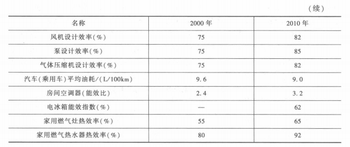 4.主要耗能設(shè)備效率“十二五”期間,燃煤工業(yè)鍋爐平均運行率約為70%,比國際先進(jìn)水平低10%-25%;中小電動機平均效率為87%;風(fēng)機、水泵平均設(shè)計效率為75%,均比國際先進(jìn)水平低5%,系統(tǒng)運行效率低20%;機動車嫩油經(jīng)濟(jì)性水平比歐盟低25%,比E(本低20%,比美國低10%;載貨汽車百噸千米油耗7. 6L,比國外先進(jìn)水平高1倍以上,內(nèi)河運輸船舶油耗比國外先進(jìn)水平高10%~20%,表1-4為主要耗能設(shè)備能耗指標(biāo)。