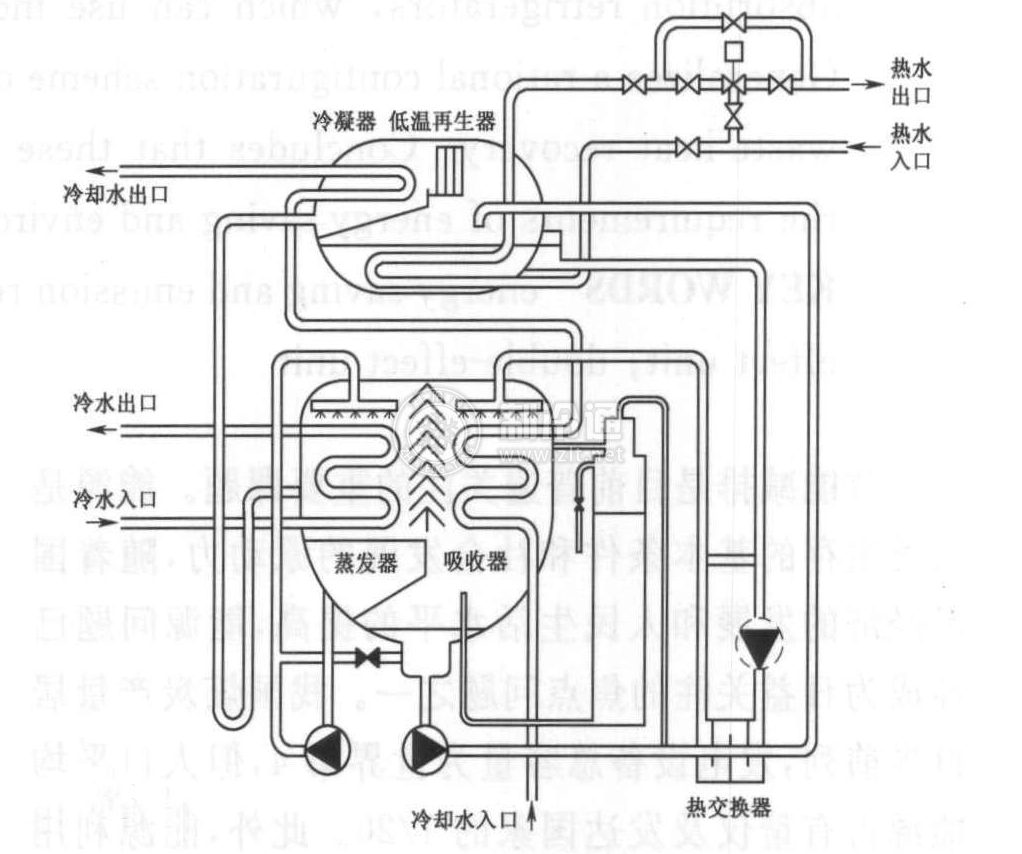 (3)由于地熱制冷方式在制冷循環中所用的工質是由吸收劑與制冷劑組成的二元溶液構成。常見的二元溶液組合有溴化鋰- 水溶液和氨 - 水溶液等,也就是以氨為制冷劑、水為吸收劑的氨吸收式制冷裝置和以水為制冷劑、溴化鋰為吸收劑的溴化鋰吸收式制冷。但是由于氨具有強烈的刺激性氣味,且由其構成的制冷劑的體積大、吸熱效率低,故主要適用于工業生產過程中。而溴化鋰吸收式制冷機是目前應用最為廣泛的一種地熱制冷機