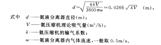 一般低壓循環(huán)桶貯液量不小于氨泵每小循環(huán)量的30%。關(guān)于低壓循環(huán)桶的選用計(jì)算如下: