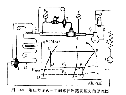 圖6-69為壓力導閥+主閥的形式用來控制蒸發壓力的原理圖。