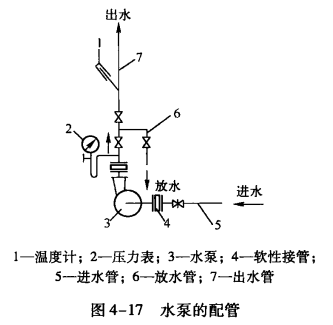 水泵的配管如圖4-17所示。為使水泵正常工作,水泵配管應注意以下幾點: