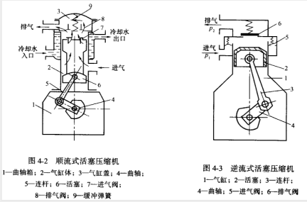 順流式活塞制冷壓縮機由于進氣效閥設在活塞上,因而增加了活塞的重量及長度,限制了壓縮機轉速的提高,因自重大,占地面積大,此目前已不再使用這種壓縮機。