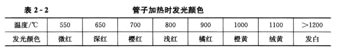 2、加熱。管子在加熱過程中應經常轉動,使加熱段圓周受熱均勻,加熱段用廢鐵皮蓋好,以便觀察管子加熱溫度,防止升溫過高和過快。要保證管內砂子和管壁溫度的一致性,碳素鋼管的加熱溫度為900~1000℃,即加至橘紅色或橙黃色,但不能超過1050℃。管子的加熱關系到彎曲弧的均勻性過渡、保證幾何尺寸及正確的彎曲半徑。它是彎管的重要環節之一,管子加熱時的發光顏色見表2-2。