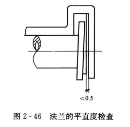 2、法蘭與管子組裝時,要用法蘭彎尺檢查法蘭的垂直度,如圖2-46所示。法蘭連接的平行偏差尺寸C,當(dāng)設(shè)計無明確規(guī)定時,則不應(yīng)大于法蘭外徑的1.5%,且不應(yīng)大于2mm。