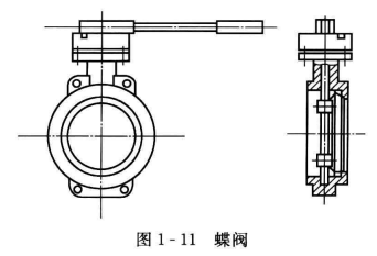 蝶閥的應用也非常廣泛,無論是中央空調的冷凍水系統,還是自動噴水滅火系統、生活給水系統等都可用蝶閥代替一般的閘閥或截止閥。蝶閥的結構簡單,其流量特性幾乎趨于直線。蝶閥安裝時兩邊不必另加任何密封墊片,只需將法蘭夾緊即可,夾緊時需使蝶閥處于“開”的狀態。蝶閥的外形如圖1-11所示。