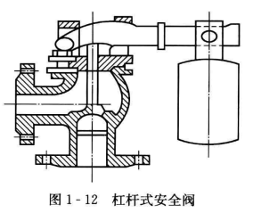 安全閥是在管網和其他設備所承受的壓力超過規定的情況時,為避免遭受破壞而裝設的附件,通常有彈簧式和杠桿式兩種,杠桿式安全閥如圖1-12所示。