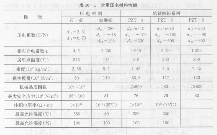 壓電材料可以分為壓電晶體和壓電陶瓷兩大類。它們都具有較大的壓電常數、機械性能優良(強度高、固有振功頻率穩定)、時間穩定性好、溫度穩定性也很好等特性。