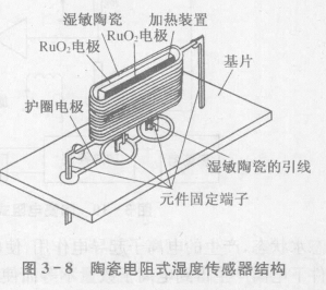 結構:結構如圖3-8所示,主要采用了TiO2系陶瓷材料,在其兩面有氧化釘(RuO2)電極和引線,并安裝有加熱清洗裝置和防護圈。