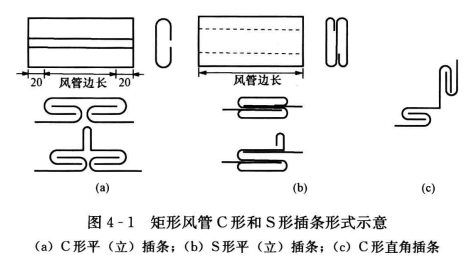 1、矩形風管C形、S形插條制作和連接應符合下列規定:
