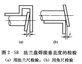 1、管件與法蘭盤焊接必須保證管子的中心線與法蘭盤的端面(密封面)垂直,其垂直度可按圖2-58所示的方法進行檢驗。