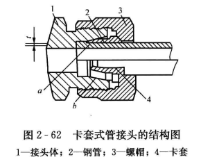 卡套式管接頭的連接特點是依靠卡套的切割刃口,緊緊咬住鋼管管壁,使管內的高壓流體得到完全密封。這種接頭還具有防松的結構特點,耐沖擊、耐振動。