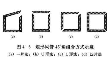 3、矩形風(fēng)管的板材放樣下料展開宜采用一片法、U形法、L形法、四片法(圖4-6)。