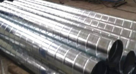 2、圓形直管加熱成形時,加熱箱里的溫度上升到130~150℃并保持穩定后,應將板材放人加熱箱內,使板材整個表面均勻受熱。板材被加熱到柔軟狀態時應取出,放在帆布上,采用木模卷制成圓管,待完全冷卻后,將管取出。木模外表應光滑,圓弧應正確,木模應比風管長100mm。