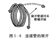 2、安裝前必須將連接管慢慢地一次一小段地展開,應當防止由于猛拉而將連接管損壞。其展開的方法,如圖5-8所示。
