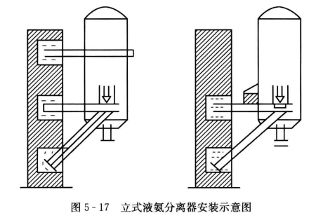 空氣分離器將制冷系統(tǒng)中不凝縮氣體與氨氣分離開后,將不凝縮氣體排出制冷系統(tǒng)外,以提高制冷效果與安全運(yùn)轉(zhuǎn)。目前常用的空氣分離器有立式與臥式兩種形式,通常安裝在距離地面1. 2m左右墻壁上,用螺栓與支架固定,如圖5-18所示。