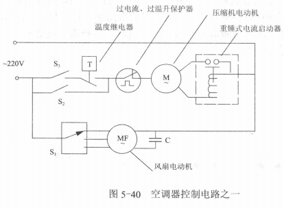 空調器的控制線路一般有壓縮機電動機的啟動和保護控制,風肩電動機的起動制,溫度和時間的控制,各種附設裝置(如電加熱、電加濕等)的控制。
