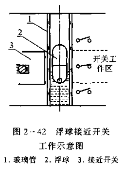 玻璃管周圍裝有有機玻璃保護罩,玻璃管內裝有浮球。浮球為對接長圓形,內放鋼珠,使其立于滾面,如圖2-42所示。浮球密度為0.78x103kg/m3,輕于油而重于氨,在氨液和油共存的容器中,浮球沉于氨所而浮于油面,從而指示出油的液位。玻璃管外裝有兩個膠木開關盒,盒內裝有晶體管接近開關。開關盒所在的位置,即分別為控制液位設定值的上、下限。UQK-41型常用于容器放油控制,UQK-42型常用于壓縮機加油控制。
