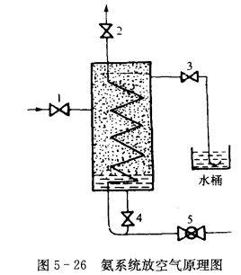 1)如圖5-26所示,首先開閥1,讓冷凝器不凝氣體與氨之混合物進入空氣分離器(開閥1前,空氣分離器處于待工作狀態),不進時再關閥1。