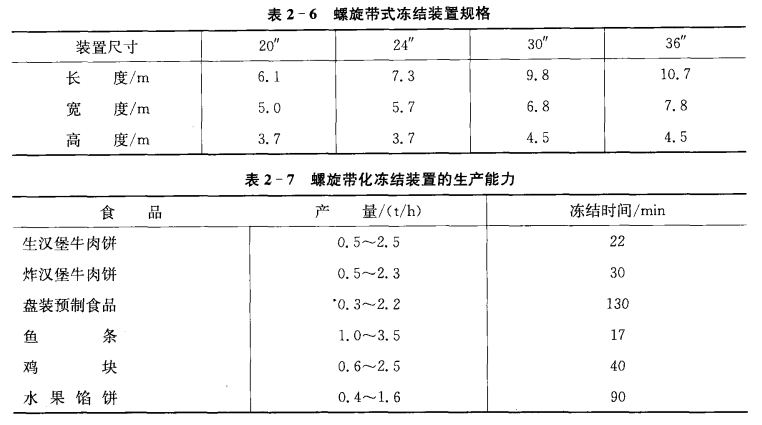 ③緊湊性,由于采用螺旋式傳送,整個(gè)凍結(jié)裝置的面積較小,如生產(chǎn)能力為1.4~1. 8t/h的裝置,占地僅46m2左右。