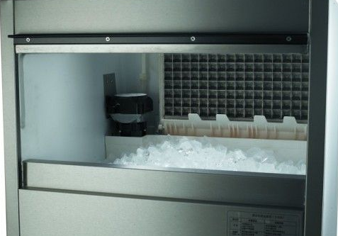 把固定在冰桶組合架上的若干個冰捅加滿水,用吊車把冰桶架吊送至制冰池內,制冰他內的鹽水被蒸發器冷卻到-10℃左右,利用這低溫鹽水將冰桶內的水凍結成冰。冰凍好后,再用吊車將冰桶架一組一組地依次吊送至融冰池,在池中浸2~3min,待水桶與冰的接觸面融化后,再將冰桶置于倒冰架上,令其倒翻,冰塊就很快脫離冰桶傾倒在帶有坡度的滑冰道上,然后使冰塊滑入貯冰間??毡霸诘贡苌蠌椭疗椒牛眉铀鲗Ρ凹訚M水后重新入池。