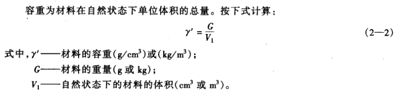 容重材料在自然狀態下單位體積的總量。按下式計算: