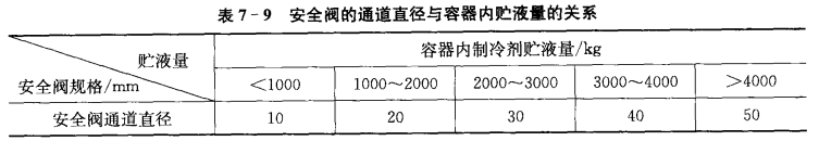 在設(shè)備上設(shè)置安全閥,最重要的一點(diǎn)是要求它在達(dá)到開啟壓力時(shí)必領(lǐng)具有足夠的排氣能力。因此,要求出廠的安全閥應(yīng)經(jīng)過額定排量試驗(yàn)合格。全安排放系統(tǒng)的氣流阻力盡可能要小而且暢通,其管道的截面積應(yīng)符合表7-9的要求,以確保迅速排除超壓部分的青島制冷劑。