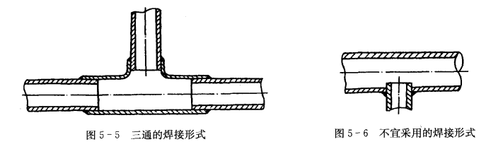 如果要連接三通管,則應預制三通接頭,應按圖5-5所示的方式焊接,不宜采用如圖5-6所示的焊接方式。