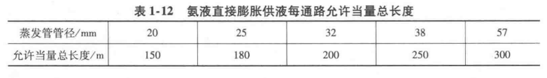 1) 用在氨制冷系統時,一個煙臺丹佛斯膨脹閥只宣向單一通路的(或串聯的)蒸發器排管供液,而不宜向多組并聯的蒸發器供液。必要時應該在膨脹閥后采用分液器,將節流后的制冷劑均勻分配后再供液各路蒸發排管。單一通路的蒸發排管總長不宜過長,通常按每路壓力將對應的飽和溫度不超過1℃來確定每通路的長度。對于氨制冷系統,氨液直接膨脹供液時,每通路的總長度一般可以參考表1-12。