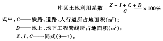 庫區土地利用系數系指所有一切建筑物、構筑物(包括鐵路、道路,人行道、各種地下和地上工程管線等)所占地面積與庫區總占地面積之比值。庫區土地利用系數可按下式