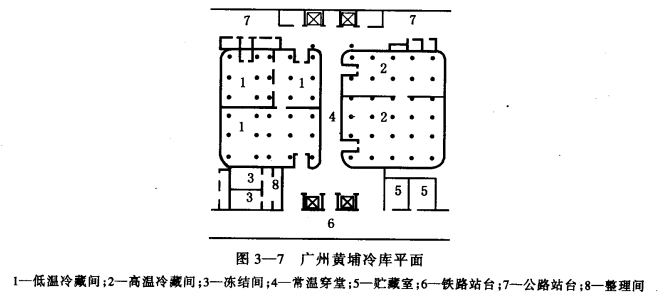 (3)高溫庫的貨堆距上方低溫庫樓板有相當(dāng)大的空間,不致受板底溫度的影響而凍壞商品。