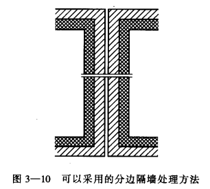 假如在結(jié)構(gòu)設(shè)計上非要求內(nèi)隔墻承重不可時,可采用圖3-10的處理方法,設(shè)里兩道分離的承重墻。