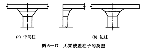 (2)無梁樓板柱。無梁樓板柱分中間柱(中柱)、邊柱兩種。邊柱又分為懸仲式及靠壁式兩種。詳見圖6-17。