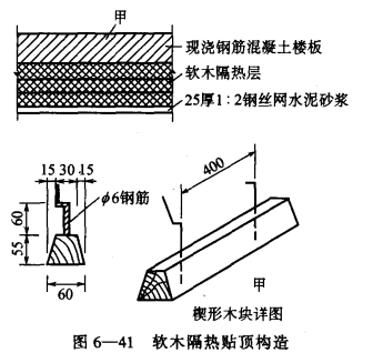 軟木貼頂隔熱樓板構(gòu)造見圖6-41。