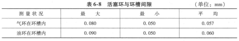 8)活塞環(huán)與環(huán)槽的間隙,氣環(huán)與油環(huán)放于環(huán)槽中,用塞尺測前后左右死點(diǎn),結(jié)果見表6-8.