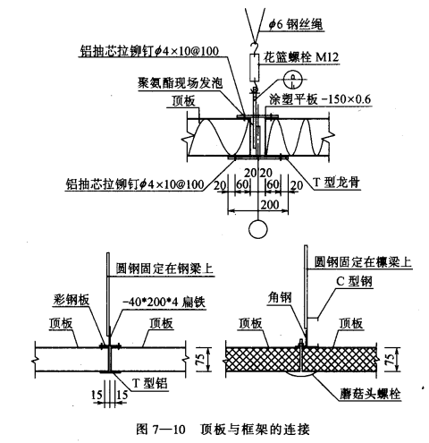 頂板與頂板的相互拉結 頂板吊裝平鋪于鋼結構框架螺栓固定,其拉結方法參見圖7-6。